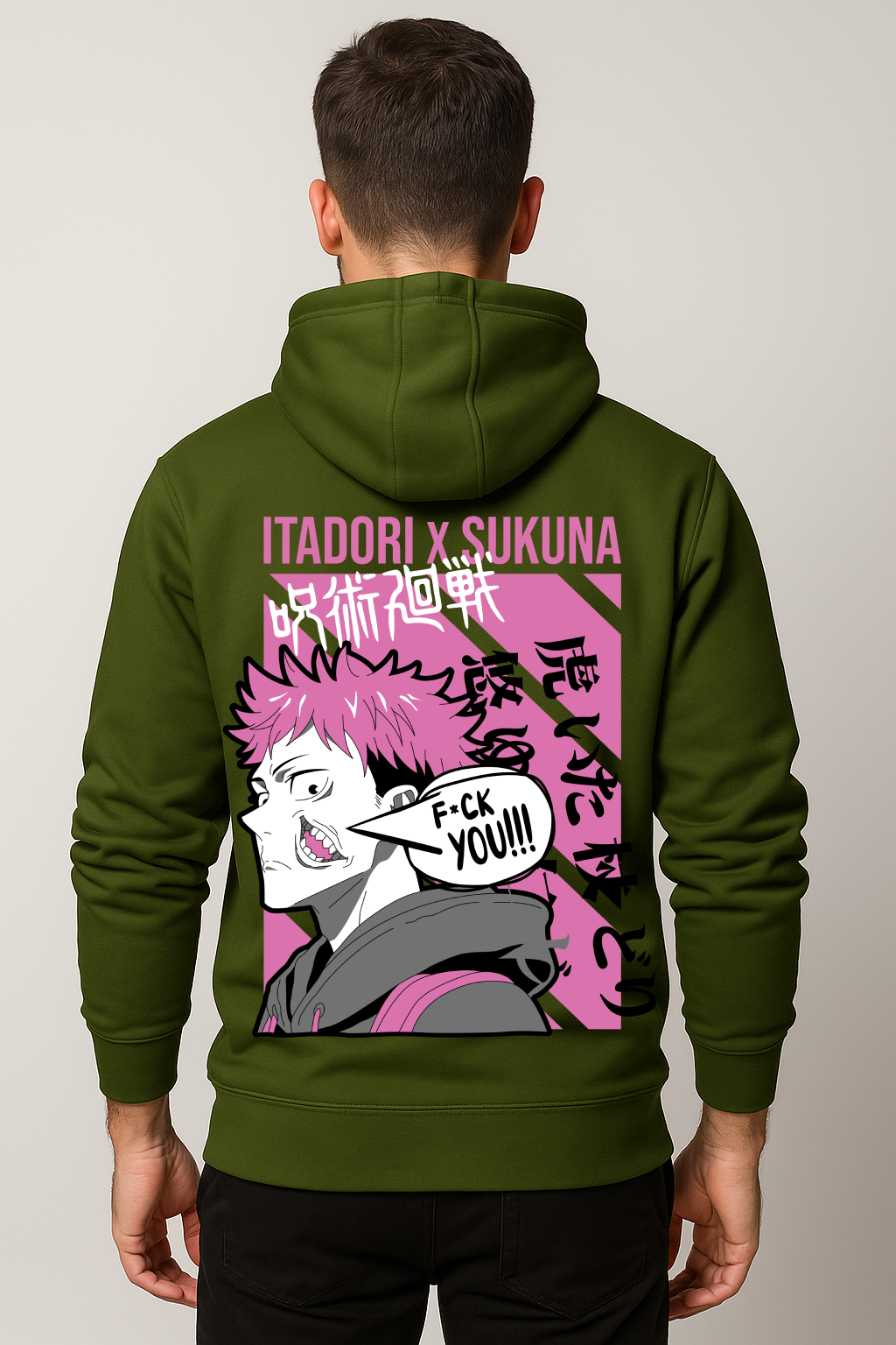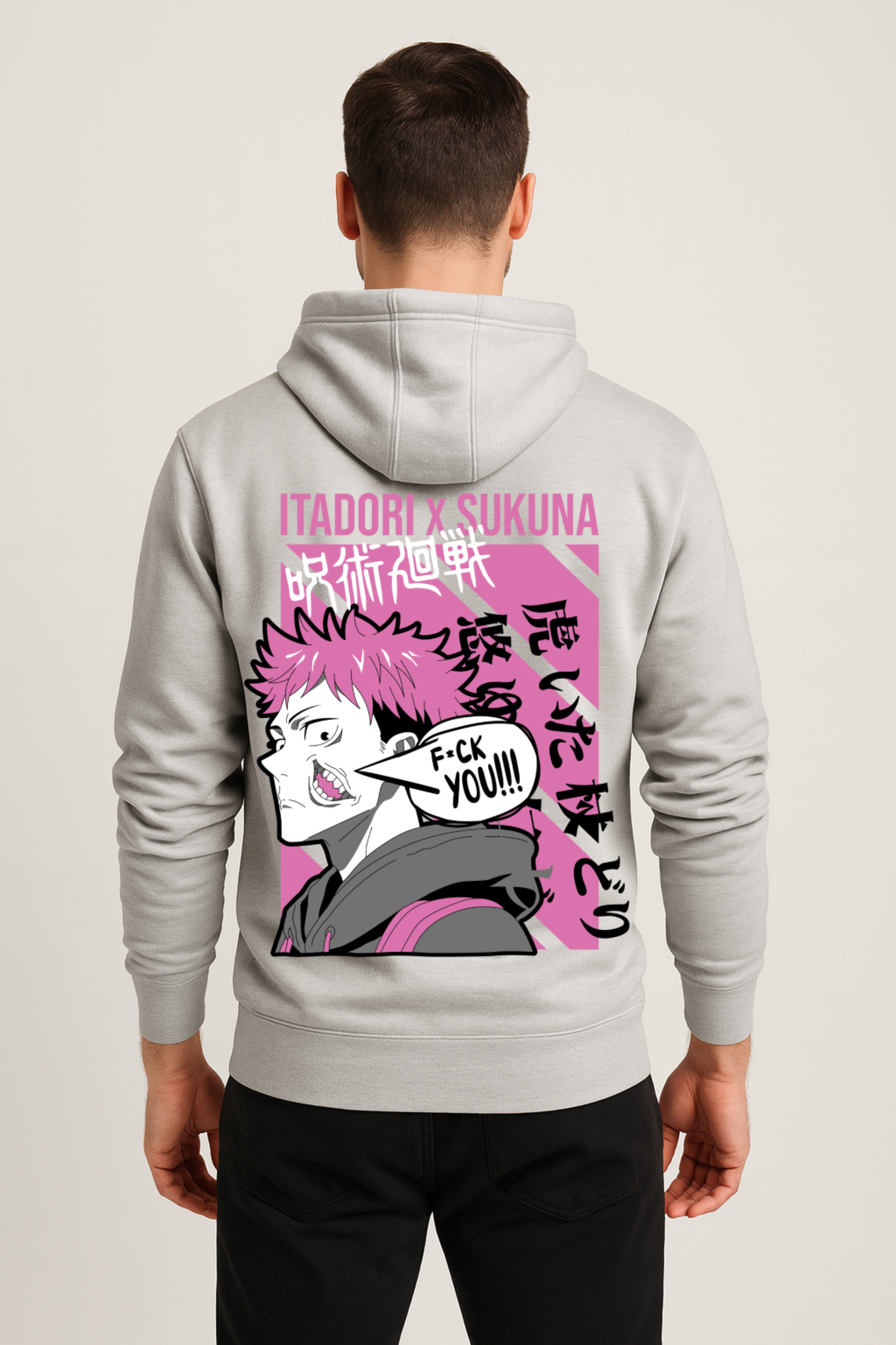Regular price Rs. 1,149.00Sale price Rs. 1,149.00 Regular price Rs. 2,300.00Unit price / perThe Cursed Duality Premium Hoodie brings the chaotic duo Itadori x Sukuna to life on the back, showcasing that iconic split personality clash - pink-haired innocence...