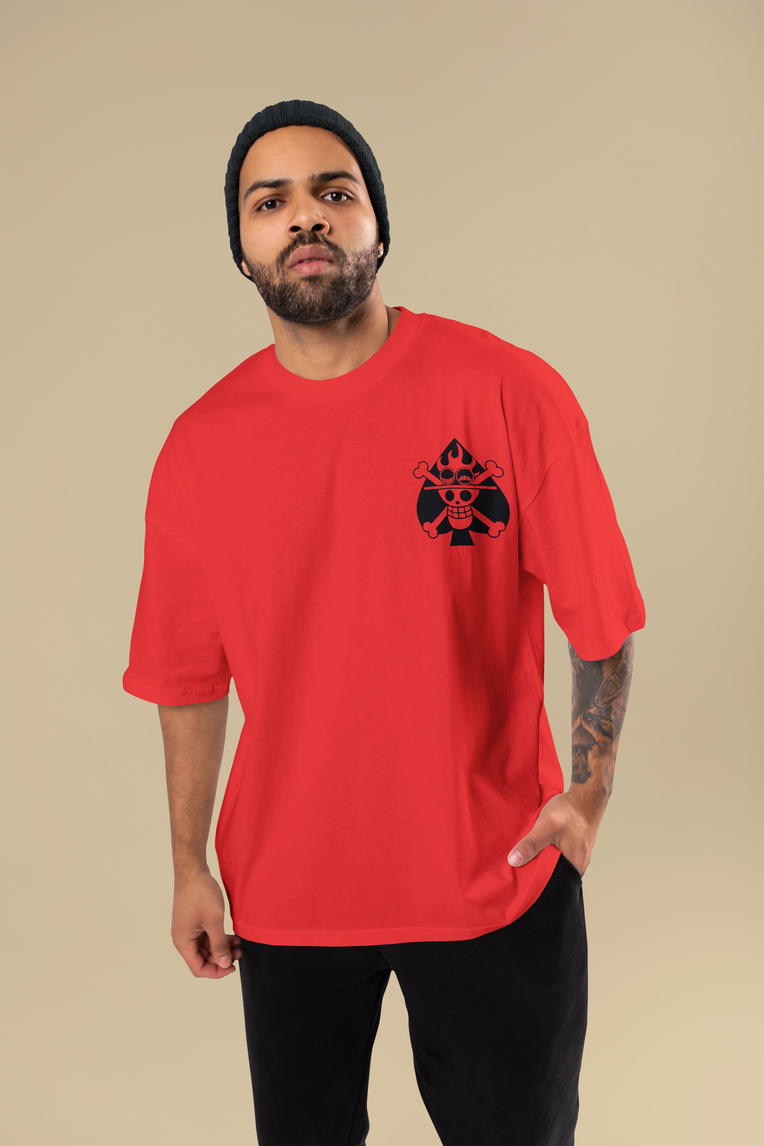 Regular price Rs. 849.00Sale price Rs. 849.00 Regular price Rs. 1,600.00Unit price / perThings just got cooler than fire. This Cotton Unisex Oversized T-Shirt brings Portgas D. Ace’s laid-back chaos straight to your wardrobe. The back design shows Ace...