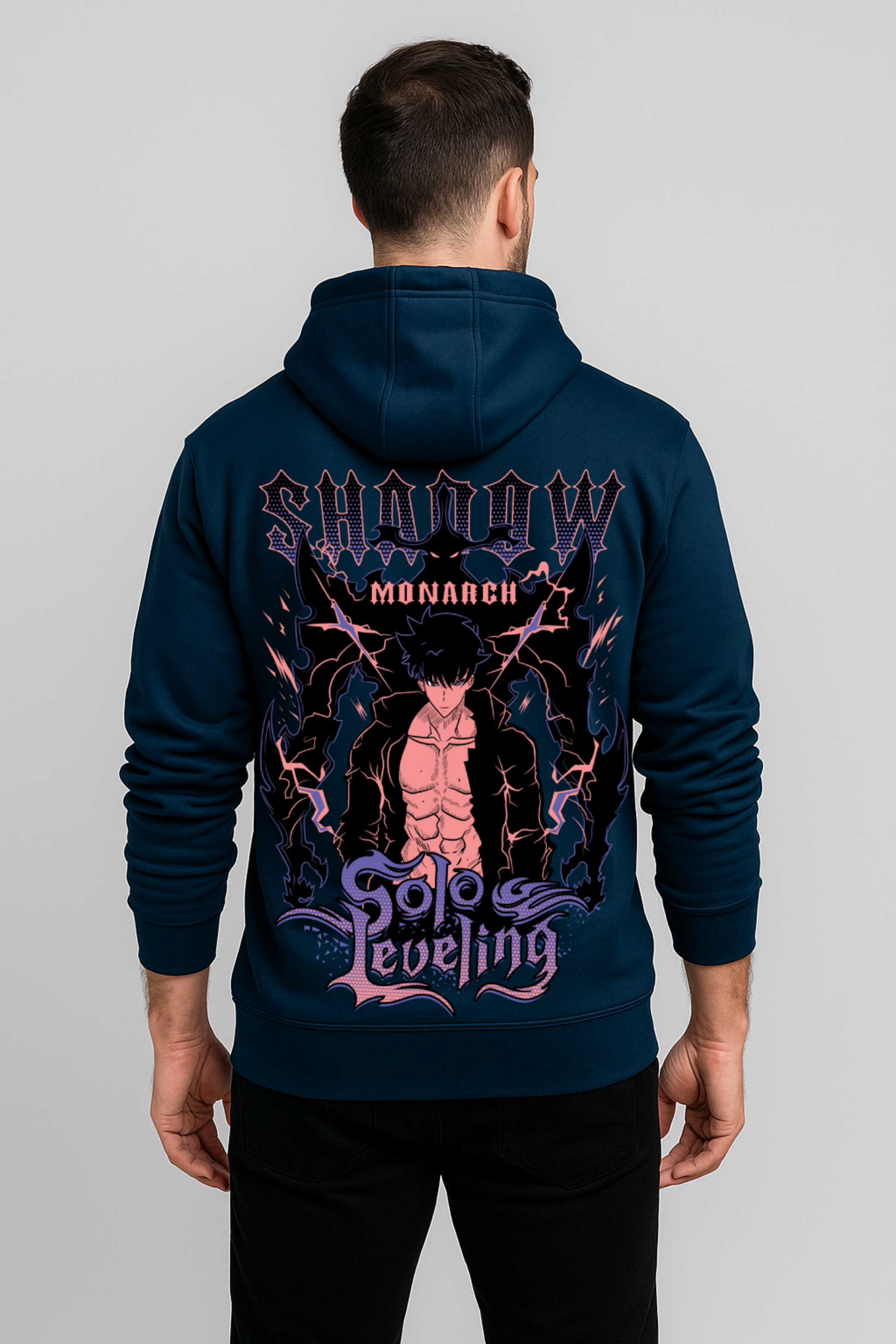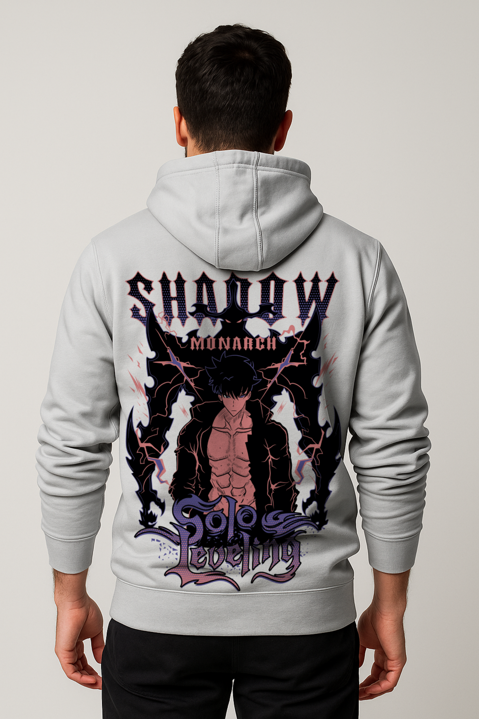 Unleash your inner monarch with the “Shadow Monarch - Awakened Edition” Hoodie, inspired by the unstoppable power of Solo Leveling. The back bursts with raw energy - lightning crackling, aura surging, and the Shadow Monarch standing tall in all his awakened glory.